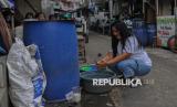 Warga mencuci peralatan dapur di halaman rumahnya di kawasan Gang Masjid RT19/RW17, Muara Baru, Jakarta Utara, Kamis (19/6/2025). Warga Muara Baru dihadapkan pada persoalan ketersediaan air bersih. Jalur pipa air bersih di wilayah itu tidak berfungsi sejak 2004. Untuk memenuhi kebutuhan masak, mandi dan cuci, warga membeli air bersih dengan sistem iuran sebesar Rp50 hingga Rp65 ribu per bulan. Warga berharap, pemerintah provinsi DKI Jakarta segera memperbaiki aliran pipa air untuk warga di kawasan tersebut, sehingga kebutuhan air bersih dapat mengalir ke setiap pintu rumah. (FOTO : Republika/Thoudy Badai)