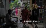 Warga beraktivitas di pemukiman padat penduduk kawasan Gang Masjid RT19/RW17, Muara Baru, Jakarta Utara, Kamis (19/6/2025). Warga Muara Baru dihadapkan pada persoalan ketersediaan air bersih. Jalur pipa air bersih di wilayah itu tidak berfungsi sejak 2004. Untuk memenuhi kebutuhan masak, mandi dan cuci, warga membeli air bersih dengan sistem iuran sebesar Rp50 hingga Rp65 ribu per bulan. Warga berharap, pemerintah provinsi DKI Jakarta segera memperbaiki aliran pipa air untuk warga di kawasan tersebut, sehingga kebutuhan air bersih dapat mengalir ke setiap pintu rumah. (FOTO : Republika/Thoudy Badai)