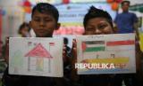 REPUBLIKA.CO.ID, PIDIE -- Anak imigran etnis Rohingya memperlihatkan hasil karya menggambarnya pada kegiatan bertema Melukis Mimpi di lokasi penampungan sementara Mina Raya, Kabupaten Pidie, Aceh, Jumat (20/6/2025).