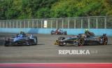 Pembalap formula E mengikuti sesi latihan bebas pertama Jakarta E-Prix.