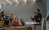 Redaktur Pelaksana Republika Subroto Kardjo memaparkan materi saat kegiatan Workshop Jurnalistik di Jakarta, Sabtu (21/6/2025). Kegiatan tersebut diikuti oleh puluhan peserta dari berbagai kalangan mulai dari pelajar, mahasiswa, pekerja hingga pengajar. Workshop Jurnalistik tersebut membahas tentang cara menulis opini di media massa, kerja-kerja jurnalistik dan kondisi dapur redaksi Republika. Kegiatan tersebut diharapkan mampu mengedukasi dan memudahkan para peserta dalam proses pembuatan berita dan opini. (FOTO : Republika/Thoudy Badai)