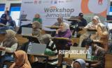 Peserta mencatat paparan materi dari Redaktur Pelaksana Republika Subroto Kardjo saat kegiatan Workshop Jurnalistik di Jakarta, Sabtu (21/6/2025). Kegiatan tersebut diikuti oleh puluhan peserta dari berbagai kalangan mulai dari pelajar, mahasiswa, pekerja hingga pengajar. Workshop Jurnalistik tersebut membahas tentang cara menulis opini di media massa, kerja-kerja jurnalistik dan kondisi dapur redaksi Republika. Kegiatan tersebut diharapkan mampu mengedukasi dan memudahkan para peserta dalam proses pembuatan berita dan opini. (FOTO : Republika/Thoudy Badai)