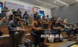 Peserta menyimak paparan materi dari Redaktur Pelaksana Republika Subroto Kardjo saat kegiatan Workshop Jurnalistik di Jakarta, Sabtu (21/6/2025). Kegiatan tersebut diikuti oleh puluhan peserta dari berbagai kalangan mulai dari pelajar, mahasiswa, pekerja hingga pengajar. Workshop Jurnalistik tersebut membahas tentang cara menulis opini di media massa, kerja-kerja jurnalistik dan kondisi dapur redaksi Republika. Kegiatan tersebut diharapkan mampu mengedukasi dan memudahkan para peserta dalam proses pembuatan berita dan opini. (FOTO : Republika/Thoudy Badai)