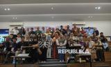 Peserta berfoto bersama saat kegiatan Workshop Jurnalistik di Jakarta, Sabtu (21/6/2025). Kegiatan tersebut diikuti oleh puluhan peserta dari berbagai kalangan mulai dari pelajar, mahasiswa, pekerja hingga pengajar. Workshop Jurnalistik tersebut membahas tentang cara menulis opini di media massa, kerja-kerja jurnalistik dan kondisi dapur redaksi Republika. Kegiatan tersebut diharapkan mampu mengedukasi dan memudahkan para peserta dalam proses pembuatan berita dan opini. (FOTO : Republika/Thoudy Badai)