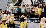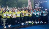 Gubernur DIY, Sri Sultan Hamengku Buwono X didampingi Direktur Utama Bank Mandiri Darmawan Junaidi melepas peserta Mandiri Jogja Marathon 2025 di Kawasan Candi Prambanan, Yogyakarta, Ahad (22/6/2025). Mandiri Jogja Marathon 2025 bertema Accelerate Your Limit, Embrace the Culture diikuti 9200 peserta dari 17 negara menjadi salah satu event lari paling ditunggu karena mengombinasikan kompetisi, keindahan alam dan kekayaan budaya lokal. Pada event ini, duet pelari Kenya Paul Kibet dan Eunice N. Muciri menjadi yang tercepat di nomor marathon open male dan female, sedangkan Nofeldi Petingko dan Ina Lidya Utari Damayanti menjadi duet pelari nasional tercepat di kategori marathon closed male dan female. (FOTO : Dok Republika)