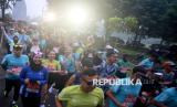 Sejumlah pelari mengikuti Mandiri Jogja Marathon 2025 di Prambanan, Klaten, Jawa Tengah, Ahad (22/6/2025). Lomba lari yang diikuti 9.200 peserta dari 17 negara dengan kategori Marathon, Half Marathon, 10K dan 5K tersebut sebagai upaya memperkuat ekosistem sport tourism Indonesia. (FOTO : Dok Republika)