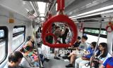 REPUBLIKA.CO.ID, JAKARTA -- Penumpang menaiki kereta LRT Jakarta di Jakarta, Ahad (22/6/2025).