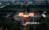 Suasana panggung acara malam puncak HUT ke-498 Jakarta di Lapangan Banteng, Jakarta, Ahad (22/6/2025). Perayaan HUT ke-498 Jakarta yang jatuh pada 22 Juni 2025 mengusung tema Jakarta Kota Global dan Berbudaya. (FOTO : ANTARA FOTO/Muhammad Adimaja)