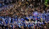 REPUBLIKA.CO.ID, JAKARTA -- Warga menyaksikan berbagai penampilan pada acara malam puncak HUT ke-498 Jakarta di Lapangan Banteng, Jakarta, Ahad (22/6/2025).