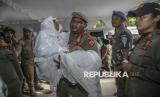 REPUBLIKA.CO.ID, TERNATE -- Petugas menggendong jamaah haji lansia setibanya di Asrama Haji Transit Ternate, Maluku Utara, Senin (23/6/2025).