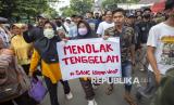 Aksi tersebut untuk menuntut pertanggungjawaban pemerintah untuk segera menangani masalah banjir rob yang selalu merendam desa mereka.