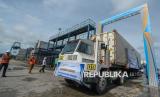 REPUBLIKA.CO.ID, KENDARI -- Truk kontainer yang membawa produk kelautan dan perikanan yang akan diekspor menuju kapal di Pelabuhan Kendari New Port, Kendari, Sulawesi Tenggara, Selasa (24/6/2025).