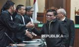 REPUBLIKA.CO.ID, JAKARTA -- Empat terdakwa kasus dugaan korupsi pengadaan lahan tanah di daerah Rorotan menjalani sidang putusan di Pengadilan Tipikor, Jakarta Pusat, Rabu (25/6/2025).