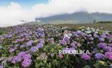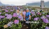 REPUBLIKA.CO.ID, BATU -- Sejumlah pengunjung menikmati suasana Ladang Bunga Hortensia (Hydrangea) di Puncak Brakseng, Batu, Jawa Timur, Sabtu (28/6/2025).