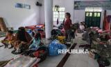Sejumlah warga terdampak banjir luapan Kali Wanggu mengungsi di Masjid At-Taubah, Kelurahan Lepo-lepo, Kendari, Sulawesi Tenggara, Ahad (29/6/2025). Berdasarkan data sementara Dinas Sosial (Dinsos) Sulawesi Tenggara, tercatat jumlah warga terdampak dan mengungsi sebanyak 402 jiwa yang tersebar di tujuh Rukun Tetangga (RT) di wilayah itu. (FOTO : ANTARA FOTO/Andry Denisah)