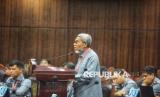Direktur Jenderal Direktorat Jenderal Kekayaan Intelektual Razilu menyampaikan keterangan Presiden pada sidang uji materiil UU nomor 28 tahun 2014 tentang Hak Cipta di Mahkamah Konstitusi, Jakarta, Senin (30/6/2025). Sidang tersebut beragendakan mendengarkan keterangan DPR dan Presiden. Sejumlah musisi mengajukan uji materiil terhadap Undang-Undang Nomor 28 Tahun 2014 tentang Hak Cipta ke Mahkamah Konstitusi (MK). Mereka mempermasalahkan beberapa pasal dalam UU tersebut. (FOTO : Republika/Prayogi)