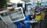 REPUBLIKA.CO.ID, BANDUNG -- Puluhan mahasiswa yang tergabung dalam Badan Eksekutif Mahasiswa Seluruh Indonesia Jawa Barat (Jabar) menggelar aksi unjuk rasa di depan Gedung DPRD Jabar, Jalan Diponegoro, Kota Bandung, Senin (30/6/2025).
