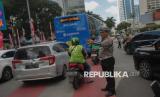 REPUBLIKA.CO.ID, JAKARTA -- Petugas kepolisian mengatur lalu lintas di kawasan Bundaran Hotel Indonesia, Jakarta, Selasa (1/7/2025).