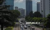 Suasana lalu lintas ramai lancar di Jalan Sudirman, Jakarta, Selasa (1/7/2025). Dirlantas Polda Metro Jaya melakukan pengalihan arus lalu lintas di sejumlah ruas jalan secara situasional saat acara HUT ke-79 Bhayangkara di Monumen Nasional. Pantauan Republika, situasi lalu lintas di Jalan Sudirman Thamrin terpantau ramai lancar, kendaraan didominasi oleh kendaraan pejabat dan patwal yang melintas usai menghadiri upacara HUT ke-79 Bhayangkara di kawasan Monas. Pengalihan arus lalu lintas dilakukan di kawasan Monumen Nasional, Jalan Sudirman Thamrin, sekitar Lapangan Banteng, Jalan Gunung Sahari, Jalan Veteran, Jalan Benjamin Sueb dan Jalan Juanda. (FOTO : Republika/Thoudy Badai)