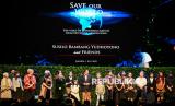 REPUBLIKA.CO.ID, JAKARTA -- Presiden ke-6 RI Susilo Bambang Yudhoyono (tengah) bersama sejumlah musisi menghadiri peluncuran video musik Save Our World di Jakarta, Selasa (1/7/2025).