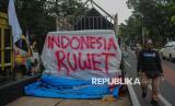 Sopir truk melakukan aksi di Jalan Merdeka Selatan, Jakarta, Rabu (2/7/2025). Ratusan sopir truk menggelar aksi terkait kebijakan zero over dimensi over load (ODOL) atau truk bermuatan berlebih. Mereka menilai kebijakan tersebut akan merugikan pihak sopir dan pemilik angkutan, pasalnya penerapan kebijakan tersebut tidak melibatkan semua pihak salah satunya sopir truk dan pemilik angkutan. Mereka meminta pemerintah untuk mengkaji ulang kebijakan zero ODOL serta menyiapkan solusinya. Sebelumnya, Menteri Perhubungan Dudy Purwagandhi mengatakan penertiban ODOL akan segera dilaksanakan. Penertiban itu mengacu pada Undang-Undang Nomor 22 Tahun 2009 tentang Lalu Lintas dan Angkutan Jalan. (FOTO : Republika/Thoudy Badai)