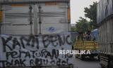 Ratusan sopir truk menggelar aksi terkait kebijakan zero over dimensi over load (ODOL) atau truk bermuatan berlebih.