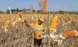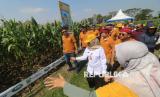 Tamu undangan mengamati jagung unggulan saat peluncuran dan pameran benih jagung Syngenta Perkasa Sakti di Kabupaten Kediri, Jawa Timur, Rabu (2/7/2025). Kegiatan dengan mengundang perwakilan kelompok tani se-Kediri tersebut guna memperkenalkan varietas jagung Syngenta Perkasa Sakti yang memiliki ketahanan tinggi terhadap kekeringan, tahan hama, dan toleransi terhadap herbisida glifosat sehingga diharapkan dapat meningkatkan target produksi dalam mendukung ketahanan pangan Indonesia. (FOTO : Dok Republika)