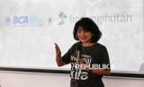 VP of Strategy Lindungi Hutan Adryan Hafizh (kanan) dan Head of Marketing Communications BCA Life Lely Pekih (kiri) menyampaikan paparan saat acara penyerahan donasi 1 Polis = 1 Pohon di Jakarta, Selasa (1/7/2025). Sebagai bagian dari peringatan Hari Bumi 2025, BCA Life menanam 1.111 pohon mangrove di Desa Sukawali, Kabupaten Tangerang. Program ini merupakan hasil dari kampanye CSR bertajuk 1 Polis = 1 Pohon, di mana setiap polis yang terjual sepanjang periode 22 April hingga 22 Mei 2025 dikonversikan menjadi satu pohon mangrove. Penanaman mangrove diharapkan dapat membantu mencegah abrasi pantai, menyerap karbon, serta mendukung ekosistem pesisir secara berkelanjutan. (FOTO : Republika/Prayogi)