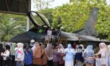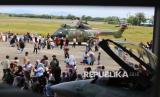 REPUBLIKA.CO.ID, ACEH -- Pengunjung bersama keluarganya menyaksikan alutsista pesawat tempur F16 dan helikopter puma saat berlangsung open base di Pangkalan Udara Sultan Iskandar Muda (SIM), Blang Bintang, kabupaten Aceh Besar, Aceh, Kamis (3/7/2025).