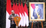 Wakil Gubernur DKI Jakarta Rano Karno memberikan sambutan saat acara penganugerahan lomba fotografi Color of Jakarta 2025 yang berlangsung di Balai Agung, Balai Kota Jakarta, Kamis (3/7/2025). Pewarta foto Republika Prayogi menjadi juara ketiga dalam lomba fotografi Color of Jakarta 2025 pada kategori essai foto. Dalam karyanya, Prayogi mengangkat tema Microgreen, Gizi Maksimal di Tengah Kota. Color of Jakarta 2025 mengangkat tema Merayakan Identitas Lokal, Membangun Entitas Global, Kompetisi itu menghimpun 5.258 karya dari 867 peserta yang berasal dari berbagai kalangan. Lomba fotografi tersebut menjadi ajang unjuk kreativitas visual yang menyoroti pesona dan dinamika Kota Jakarta dari beragam perspektif. (FOTO : Dok Republika)
