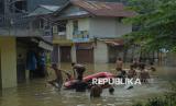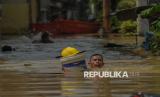 REPUBLIKA.CO.ID, JAKARTA -- Warga beraktivitas saat banjir merendam permukimannya di kawasan Bidara Cina, Jatinegara, Jakarta, Ahad (6/7/2025).