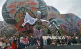 Penari menampilkan tari Lengger saat memeriahkan Java Balloon Attraction 2025 di lapangan Taman Rekreasi Kalianget, Wonosobo, Jawa Tengah, Ahad (6/7/2025). Atraksi penerbangan sebanyak 36 balon tradisional berbagai motif dengan membentuk formasi Gunung Sindoro dan Telaga Menjer dalam rangkaian har? jadi ke-200 Kabupaten Wonosobo tersebut sekaligus sebagai salah satu even budaya untuk meningkatkan kunjungan wisata. (FOTO : ANTARA FOTO/Anis Efizudin)