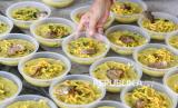 Petugas mengemas bubur pada tradisi Bubur Asyura di Langgar Al-Falah di kawasan Muso Salim, Samarinda, Kalimantan Timur, Ahad (6/7/2025). Tradisi bubur Asyura yang merupakan akulturasi Islam dan budaya riparian untuk memperingati 10 Muharram dengan membagikan sekitar 3.000 porsi bubur kepada warga sekitar sebagai wujud rasa syukur kepada Tuhan atas limpahan rezeki dan kesehatan. ANTARA FOTO/M Risyal Hidayat/rwa. (FOTO : ANTARA FOTO/M Risyal Hidayat)