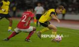 Pemain Oxford United FC Ole Romeny berduel dengan pemain Liga Indonesia All Star Hansamu Yama saat bertanding pada laga Piala Presiden 2025 di Stadion Utama Gelora Bung Karno (SUGBK), Jakarta, Ahad (6/7/2025). Pada laga tersebut, Oxford United berhasil menaklukan Liga Indonesia All Star dengan skor 6-3. Pertandingan tersebut menjadi laga pembuka gelaran Piala Presiden 2025. (FOTO : Republika/Thoudy Badai)