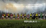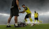 Pemain Oxford United FC bersiap bertanding melawan tim Liga Indonesia All Star saat bertanding pada laga Piala Presiden 2025 di Stadion Utama Gelora Bung Karno (SUGBK), Jakarta, Ahad (6/7/2025). Pada laga tersebut, Oxford United berhasil menaklukan Liga Indonesia All Star dengan skor 6-3. Pertandingan tersebut menjadi laga pembuka gelaran Piala Presiden 2025. (FOTO : Republika/Thoudy Badai)