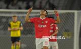 Pemain Liga Indonesia All Star Rizky Dwi melakukan selebrasi usai berhasil mebobol gawang Oxford United FC saat bertanding pada laga Piala Presiden 2025 di Stadion Utama Gelora Bung Karno (SUGBK), Jakarta, Ahad (6/7/2025). Pada laga tersebut, Oxford United berhasil menaklukan Liga Indonesia All Star dengan skor 6-3. Pertandingan tersebut menjadi laga pembuka gelaran Piala Presiden 2025. (FOTO : Republika/Thoudy Badai)