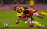 Pemain Oxford United FC Ole Romeny (kanan) berusaha melewati adangan pemain Liga Indonesia All Star saat bertanding pada laga Piala Presiden 2025 di Stadion Utama Gelora Bung Karno (SUGBK), Jakarta, Ahad (6/7/2025). Pada laga tersebut, Oxford United berhasil menaklukan Liga Indonesia All Star dengan skor 6-3. Pertandingan tersebut menjadi laga pembuka gelaran Piala Presiden 2025. (FOTO : Republika/Thoudy Badai)