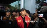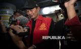 REPUBLIKA.CO.ID, PALEMBANG -- Wali Kota Palembang periode 2015-2023 Harnojoyo berjalan menuju mobil tahanan usai ditetapkan sebagai tersangka di kantor Kejaksaan Tinggi (Kejati) Sumatera Selatan di Palembang, Sumatera Selatan, Senin (7/7/2025).