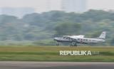 Pesawat PK-DPI lepas landar untuk melakukan Operasi Modifikasi Cuaca (OMC) di Lanud Halim Perdanakusuma, Jakarta, Kamis (10/7/2025). Badan Nasional Penanggulangan Bencana (BNPB) bersama Badan Meteorologi Klimatologi dan Geofisika (BMKG), dan TNI Angkatan Udara melaksanakan Operasi Modifikasi Cuaca (OMC) dalam rangka penanganan bencana hidrometeorologi basah di wilayah Jabodetabek pada 7-11 Juli 2025 dengan total bahan semai sebanyak 12,4 ton NaCl dan 3,6 ton CaO menggunakan 2 unit pesawat caravan PK-DPI dan PS-SNL. (FOTO : ANTARA FOTO/Asprilla Dwi Adha)