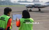 Petugas melihat peta penerbangan Operasi Modifikasi Cuaca (OMC) di Lanud Halim Perdanakusuma, Jakarta, Kamis (10/7/2025). Badan Nasional Penanggulangan Bencana (BNPB) bersama Badan Meteorologi Klimatologi dan Geofisika (BMKG), dan TNI Angkatan Udara melaksanakan Operasi Modifikasi Cuaca (OMC) dalam rangka penanganan bencana hidrometeorologi basah di wilayah Jabodetabek pada 7-11 Juli 2025 dengan total bahan semai sebanyak 12,4 ton NaCl dan 3,6 ton CaO menggunakan 2 unit pesawat caravan PK-DPI dan PS-SNL. (FOTO : ANTARA FOTO/Asprilla Dwi Adha)