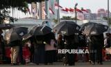 REPUBLIKA.CO.ID, JAKARTA -- Sejumlah pegiat HAM mengikuti aksi Kamisan ke-868 di depan Istana Merdeka, Jakarta, Kamis (10/7/2025).