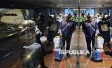 REPUBLIKA.CO.ID, TANGERANG -- Jamaah haji Indonesia kloter terakhir musim haji 1446 H / 2025 berjalan ke luar dari pesawat setibanya dari Medinah Arab Saudi di Terminal Haji dan Umrah Bandara Soekarno Hatta, Tangerang, Banten, Kamis (10/7/2025).