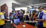 Petugas Karantina Kesehatan Banten memeriksa aplikasi Indonesia sehat dan juga suhu tubuh jamaah haji Indonesia kloter terakhir musim haji 1446 H / 2025 setibanya dari Medinah Arab Saudi di Terminal Haji dan Umrah Bandara Soekarno Hatta, Tangerang, Banten, Kamis (10/7/2025). Di hari terakhir pemulangan jamaah haji Indonesia hampir secara berbarengan mendarat dua penerbangan yang membawa tiga kloter yakni kloter 60 Dembarkasi Bekasi dan dua kloter gabungan 61 Dembarkasi Bekasi, kloter 62 Dembarkasi Pondok Gede. (FOTO : ANTARA FOTO/Muhammad Iqbal)