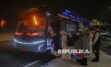 Jamaah haji Indonesia kloter terakhir bersiap menaiki bus setibanya dari Medinah Arab Saudi di Terminal Haji dan Umrah Bandara Soekarno Hatta, Tangerang, Banten, Kamis (10/7/2025). Di hari terakhir pemulangan jamaah haji Indonesia hampir secara berbarengan mendarat dua penerbangan yang membawa tiga kloter yakni kloter 60 Dembarkasi Bekasi dan dua kloter gabungan 61 Dembarkasi Bekasi, kloter 62 Dembarkasi Pondok Gede. (FOTO : ANTARA FOTO/Muhammad Iqbal)
