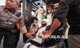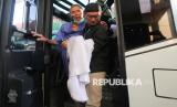 REPUBLIKA.CO.ID, SURABAYA -- Petugas membopong seorang haji dari kelompok terbang (kloter) 97 turun dari bus setibanya di Asrama Haji Sukolilo Surabaya, Surabaya, Jawa Timur, Jumat (11/7/2025).