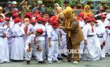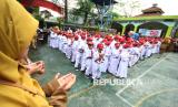 Para siswa baru memulai kegiatan Masa Pengenalan Lingkungan Sekolah atau MPLS di SDN 158 Babakan Sari, Kota Bandung, Senin (14/7/2025). Dalam kegiatan tersebut hadir Wakil Wali Kota Bandung Erwin. Dalam sambutannya, Erwin mengatakan bahwa MPLS merupakan sarana penting agar para siswa dapat mengenali lingkungan sekolah, mengenal guru, dan membangun pertemanan yang positif. (FOTO : Edi Yusuf)
