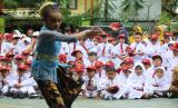 Para siswa baru melihat atraksi kesenian saat kegiatan Masa Pengenalan Lingkungan Sekolah atau MPLS di SDN 158 Babakan Sari, Kota Bandung, Senin (14/7/2025). Dalam kegiatan tersebut hadir Wakil Wali Kota Bandung Erwin. Dalam sambutannya, Erwin mengatakan bahwa MPLS merupakan sarana penting agar para siswa dapat mengenali lingkungan sekolah, mengenal guru, dan membangun pertemanan yang positif. (FOTO : Edi Yusuf)