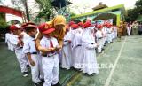 REPUBLIKA.CO.ID, BANDUNG -- Para siswa baru melihat atraksi kesenian saat kegiatan Masa Pengenalan Lingkungan Sekolah atau MPLS di SDN 158 Babakan Sari, Kota Bandung, Senin (14/7/2025).