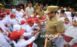 Wakil Wali Kota Bandung Erwin menyapa para siswa baru saat meninjau kegiatan Masa Pengenalan Lingkungan Sekolah atau MPLS di SDN 158 Babakan Sari, Kota Bandung, Senin (14/7/2025). Dalam sambutannya, Erwin mengatakan bahwa MPLS merupakan sarana penting agar para siswa dapat mengenali lingkungan sekolah, mengenal guru, dan membangun pertemanan yang positif. (FOTO : Edi Yusuf)