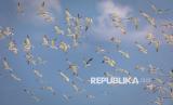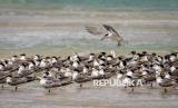 REPUBLIKA.CO.ID, SUMENEP -- Sekelompok burung camar laut paruh kuning (Larus cachinnans) terbang di selatan perairan tepi pantai Pulau Masalembu, Kecamatan Sumenep, Jawa Timur, Selasa (15/7/2025).